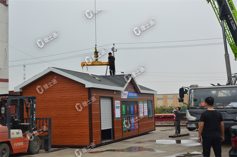 房體通體長(zhǎng)10米,分別設(shè)有管理間、投放區(qū)、休息室,可以容納多量的垃圾,在分好類后,收拾好后等待垃圾清運(yùn)車一起拉走,做到每日清潔
